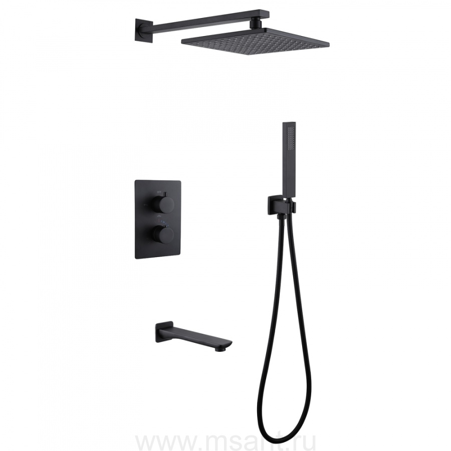 Душевая система ABBER Weiss Insel AF8050B скрытого монтажа с изливом, термостат, черная матовая