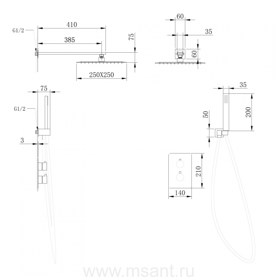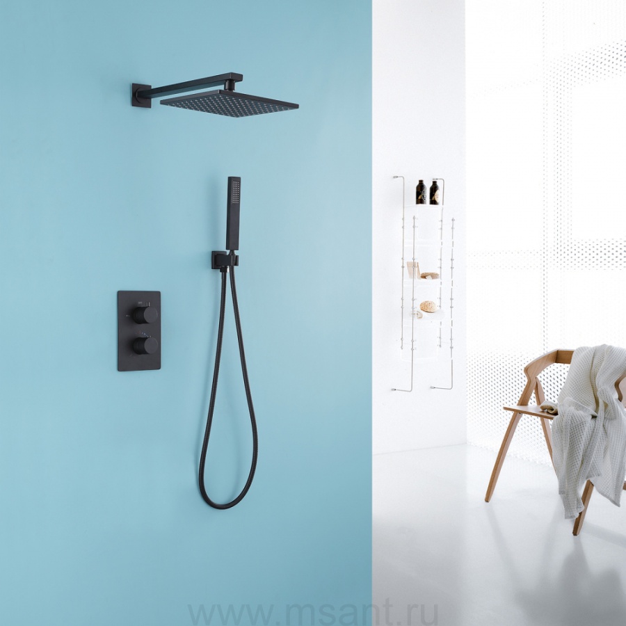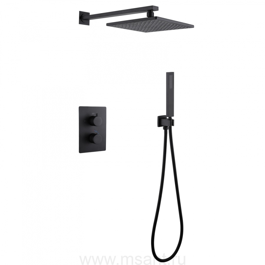 Душевая система ABBER Weiss Insel AF8051B скрытого монтажа без излива, термостат, черный матовый