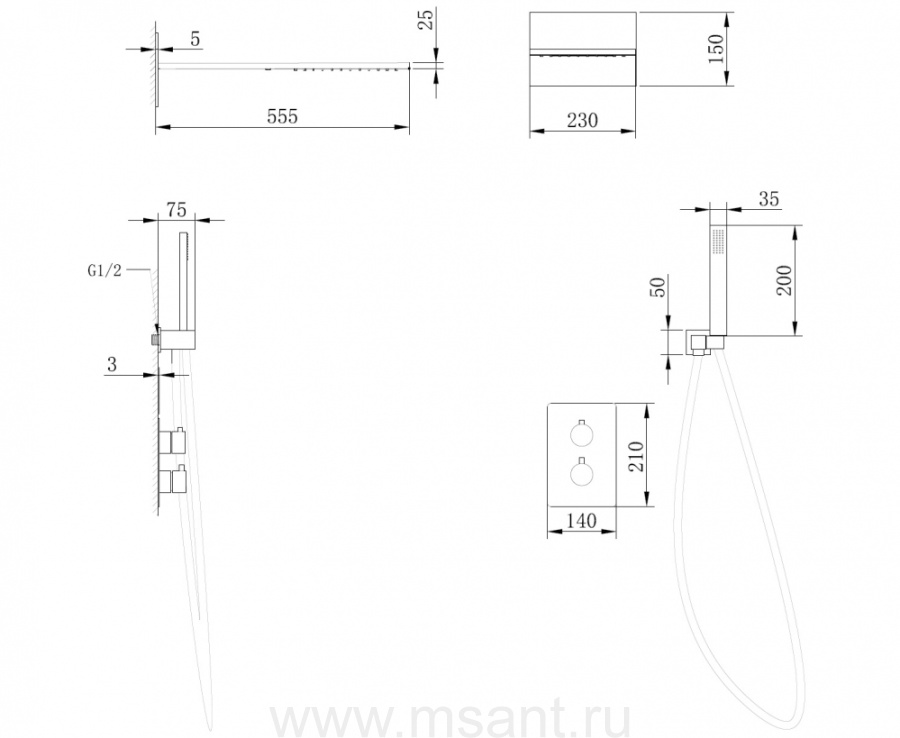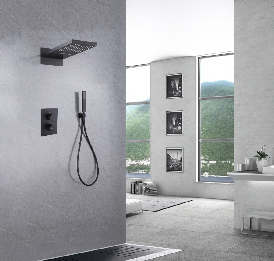 Душевая система ABBER Weiss Insel AF8052B скрытого монтажа без излива, термостат, черная матовая
