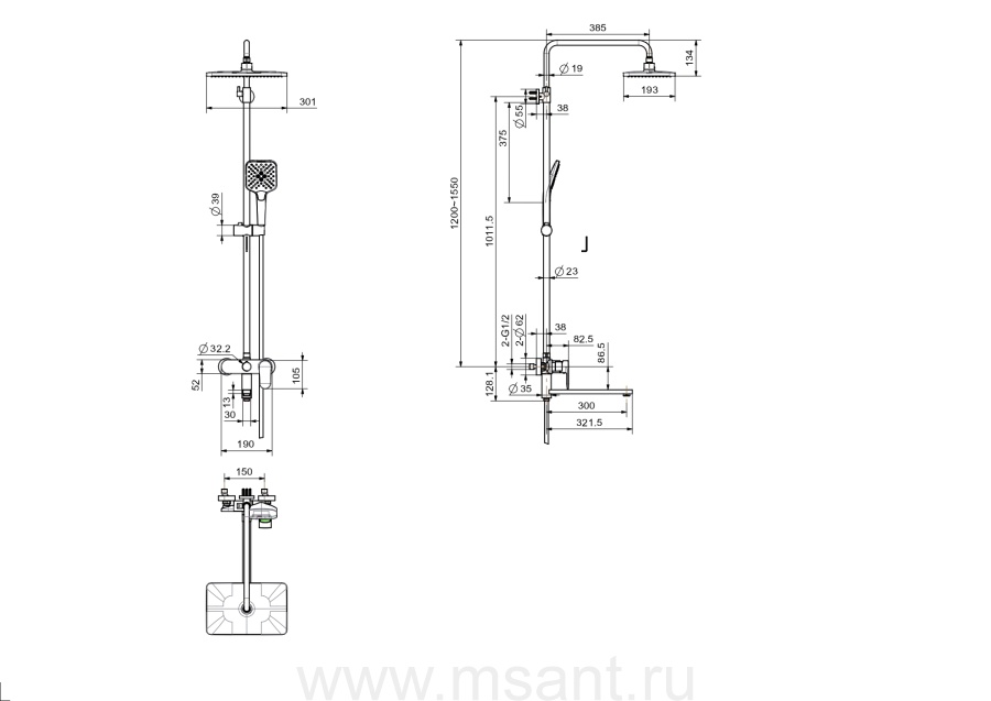 Душевая система Aquatek AQ2840CR НИКА (смеситель для ванны) 3 jet 300х193 мм с длинным изливом
