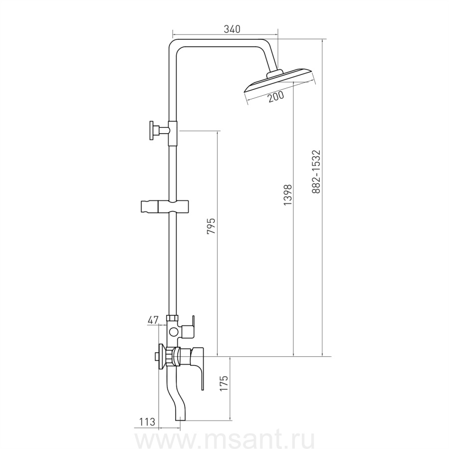 Душевая система MLSS36-06 "Steel Kit" (смеситель 35К с изл+лейка 1поз.+душ.шланг+тропич.душ.) нерж.