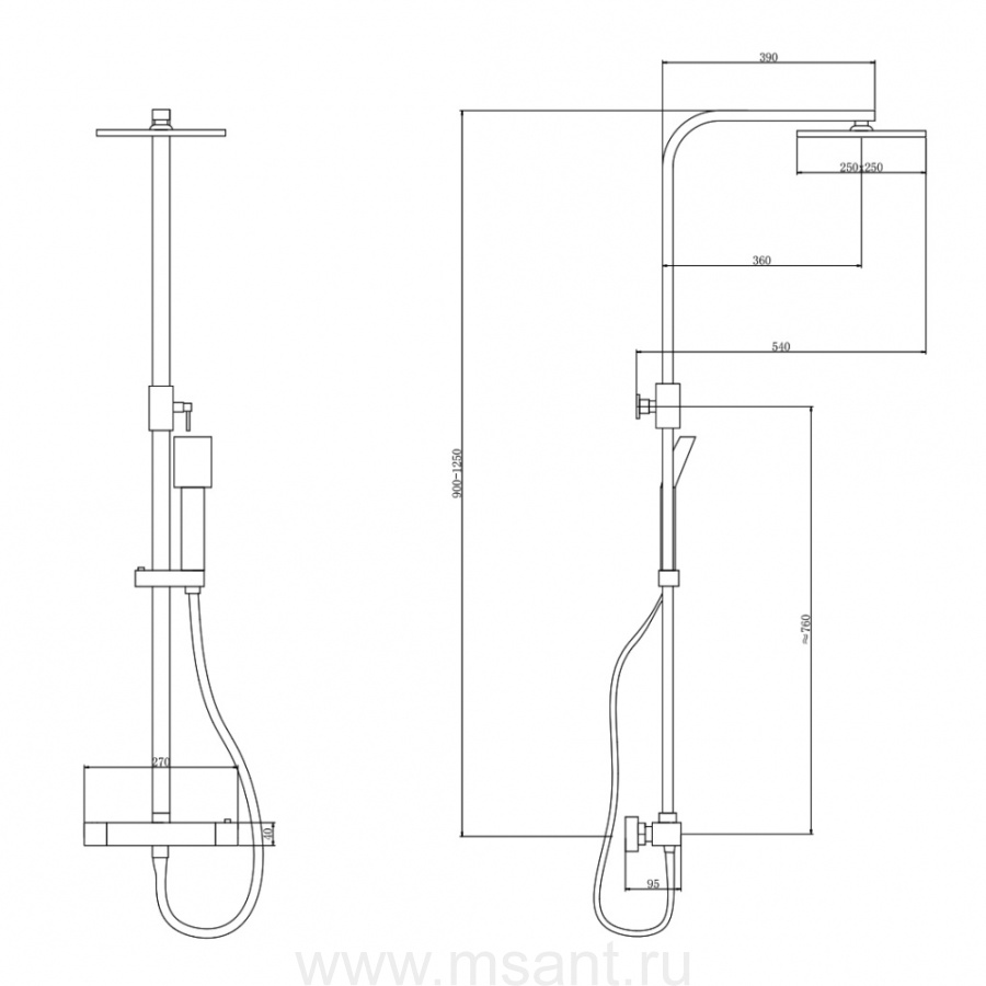 Душевая стойка ABBER Daheim AF8260B с термостатом без излива, черный матовый