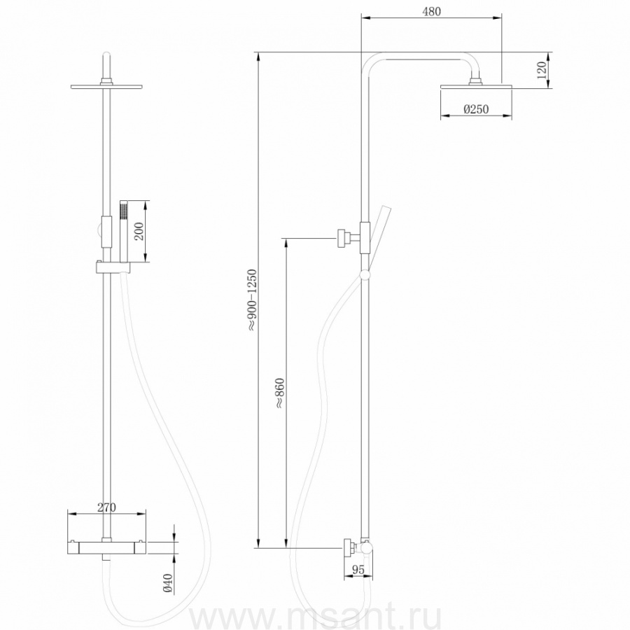 Душевая стойка ABBER Wasser Kreis AF8160NG с термостатом без излива, никель