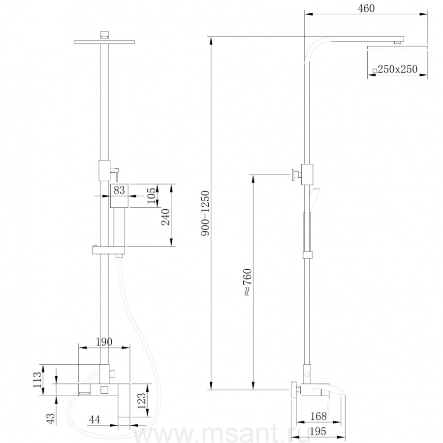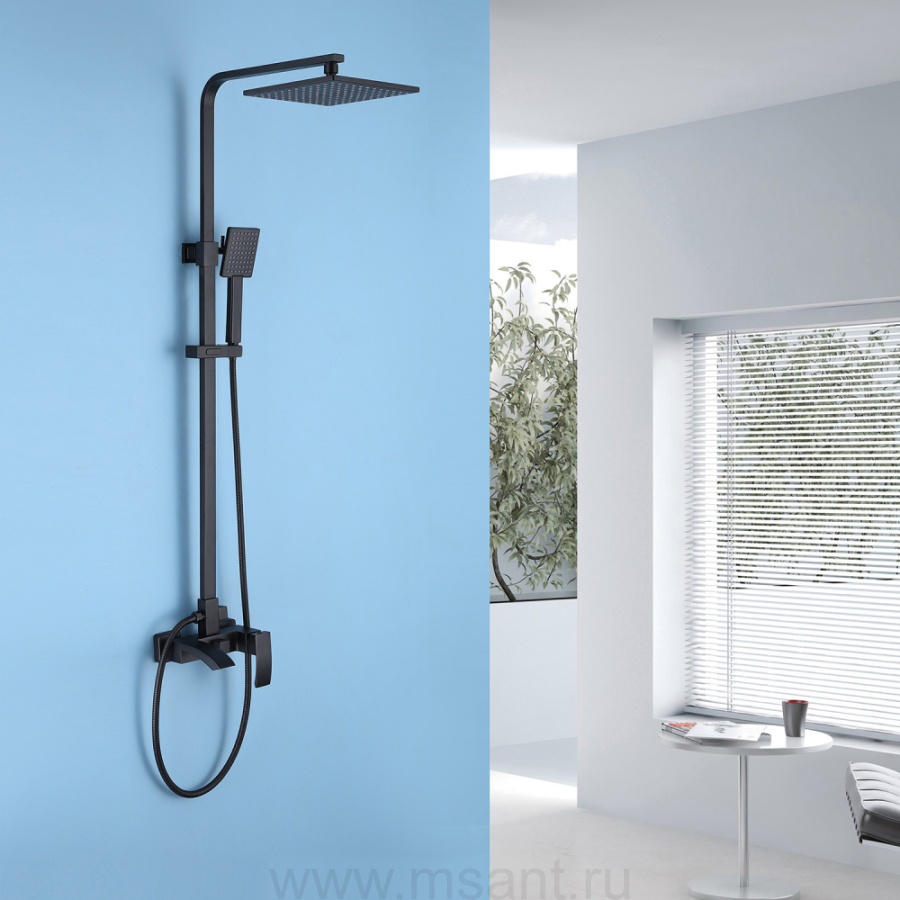 Душевая стойка ABBER Wasserfall AF8616B с изливом, черная матовая