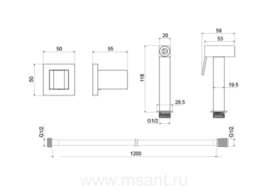 Гигиенический ручной душ со шлангом 120 см и держателем AQUATEK AQ2053CR
