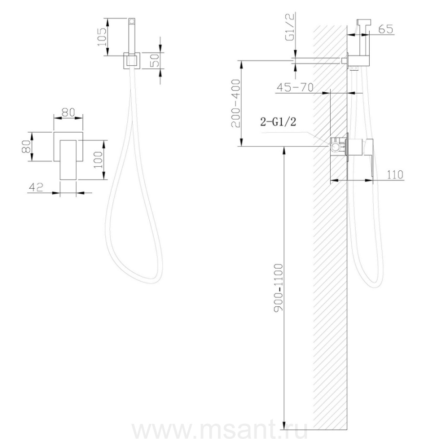 Смеситель ABBER Daheim AF8225SP с гигиеническим душем, сатин