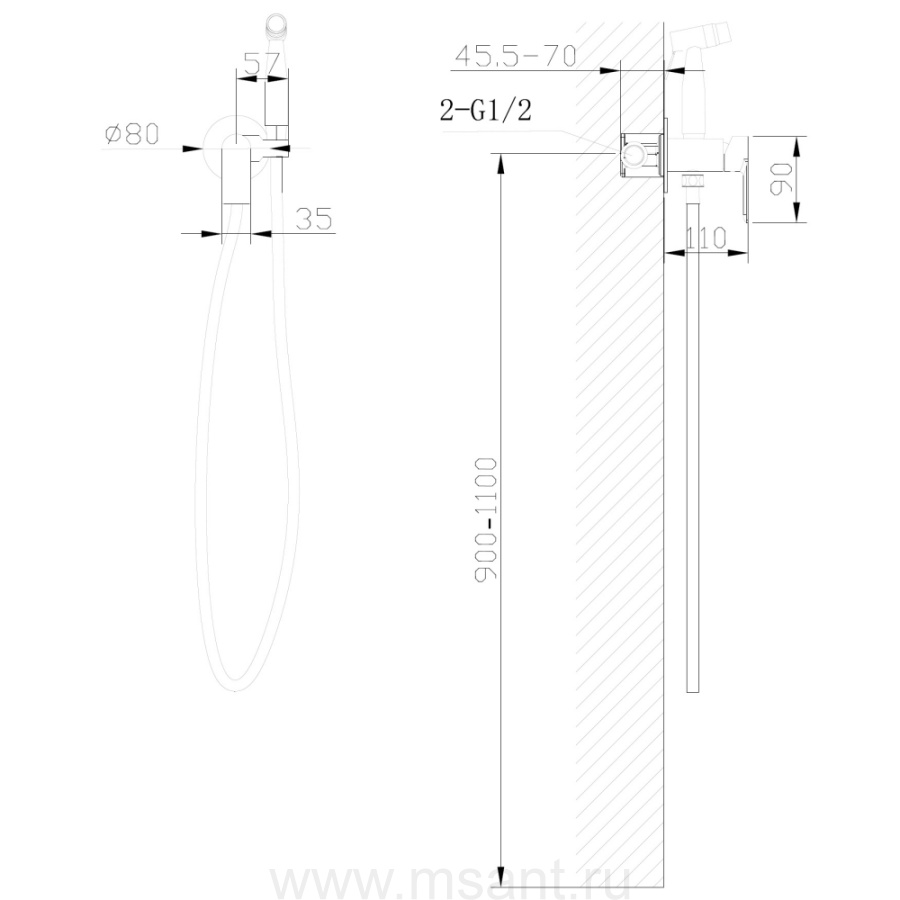 Смеситель ABBER Weiss Insel AF8025 с гигиеническим душем, хром