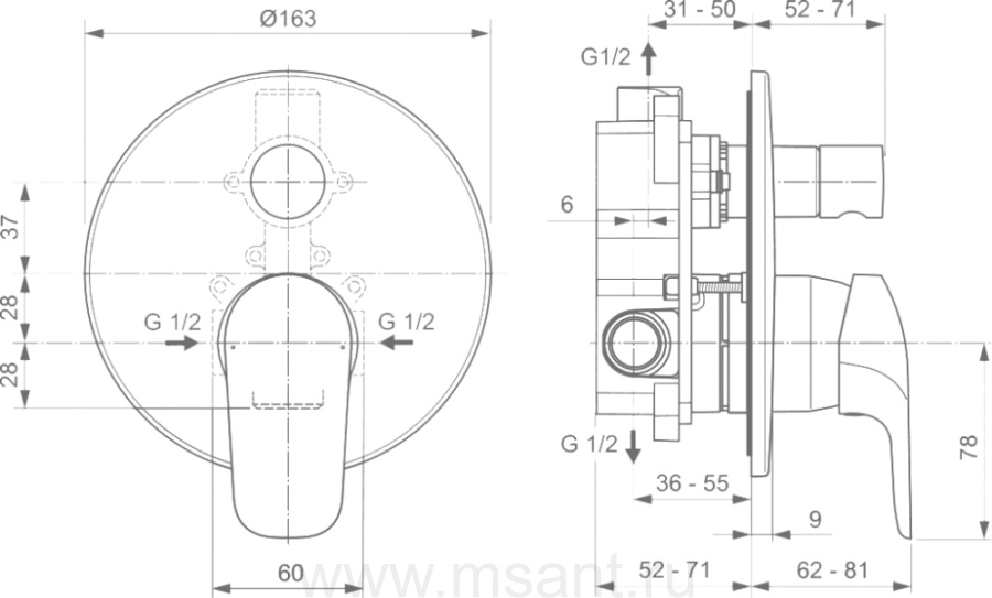 Душевой комплект Ideal Standard Ceraflex BC447AA С ВНУТРЕННЕЙ ЧАСТЬЮ