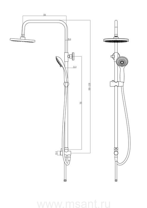 Душевой гарнитур с верхней лейкой, Milardo, 2403F21M76