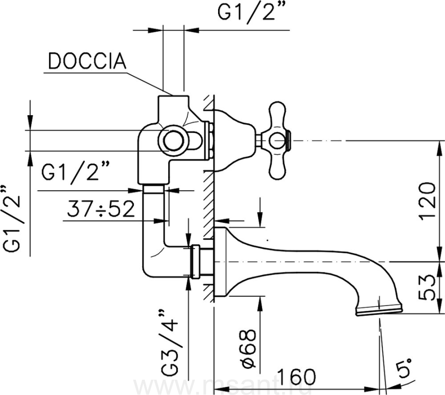 Излив Nicolazzi Doccia C2503CR для ванны, хром