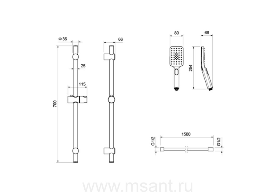 Душевой гарнитур 3jet 65 см AQUATEK AQ2018CR ЛИРА