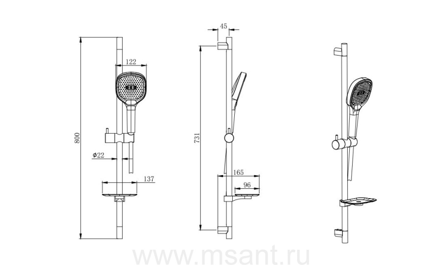 Душевой гарнитур 3jet 73см AQUATEK, матовый черный AQ2021MB