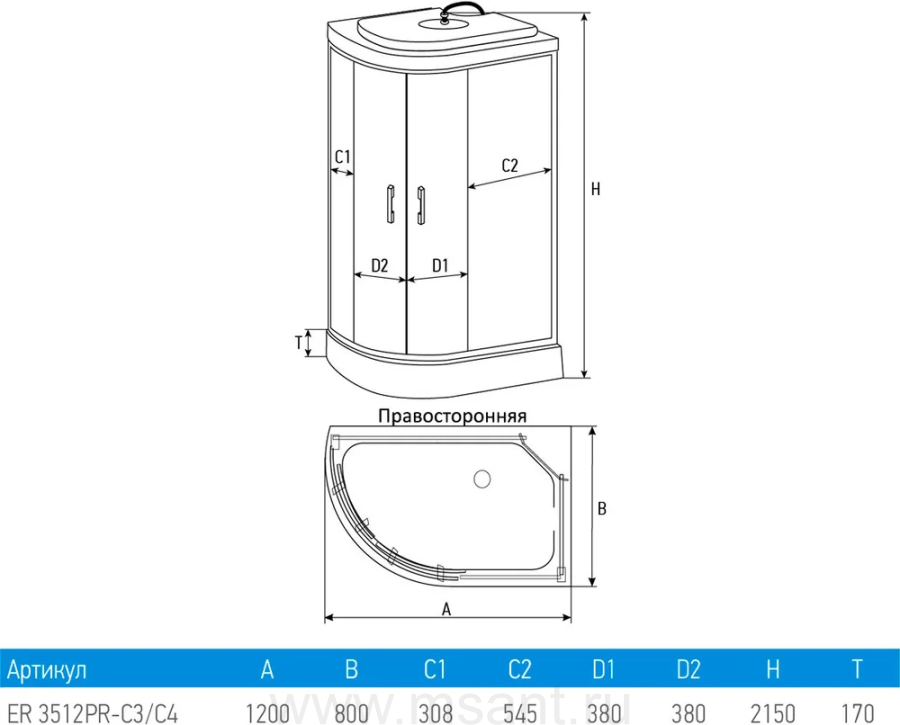Душевая кабина Erlit Comfort ER3512PR-C4-RUS