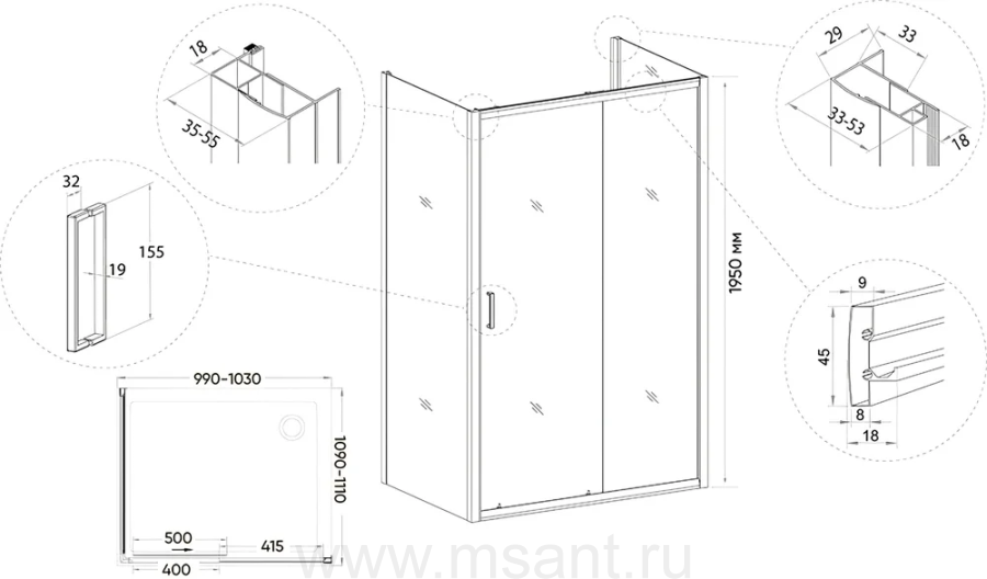 Душевой уголок Veconi Rovigo RV-046B 100x110
