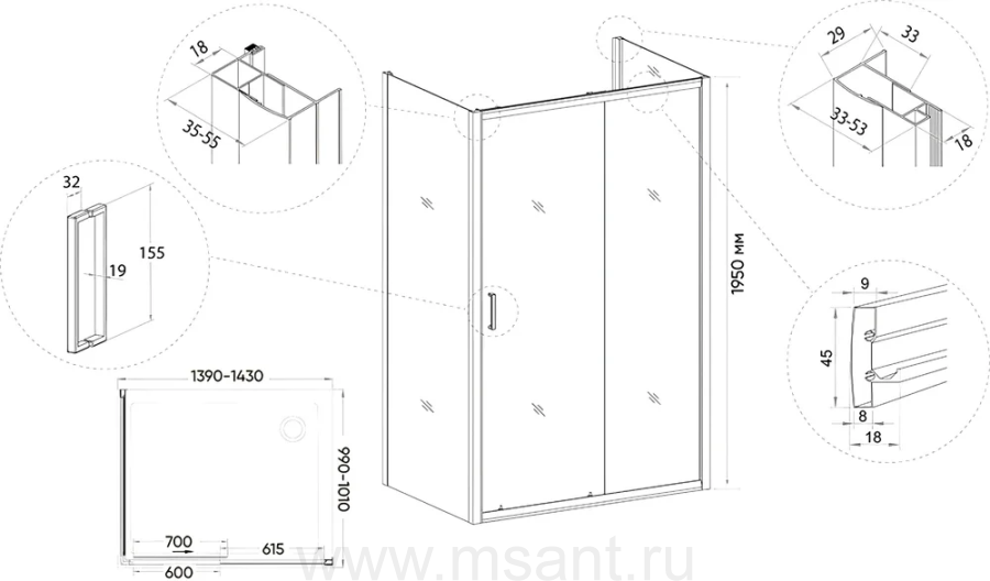 Душевые уголки, ограждения, поддоны
