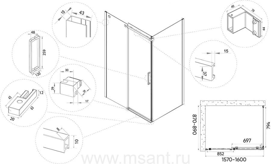 Душевой уголок Veconi Rovigo RV-070 160x90