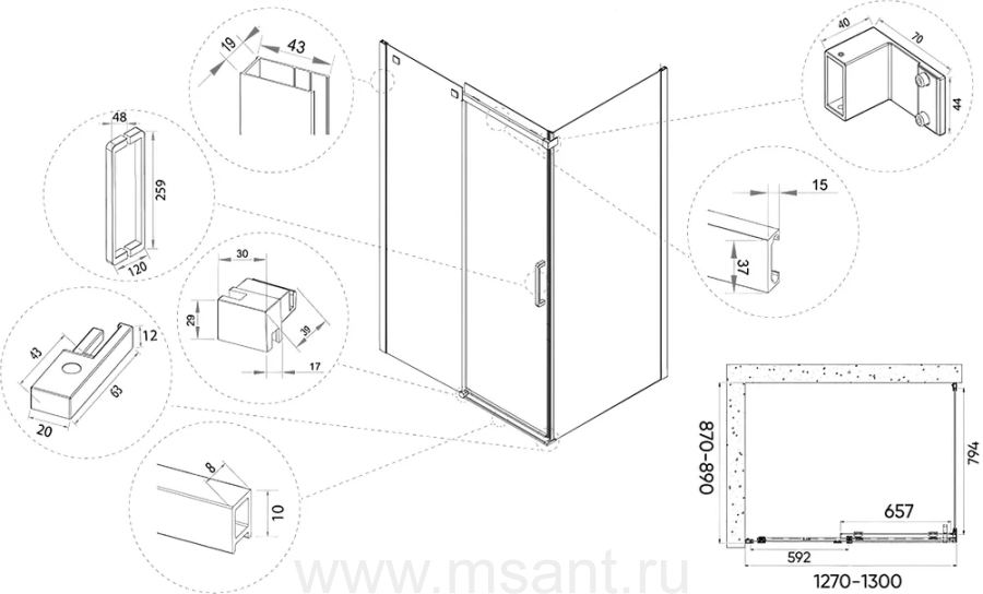 Душевые уголки, ограждения, поддоны