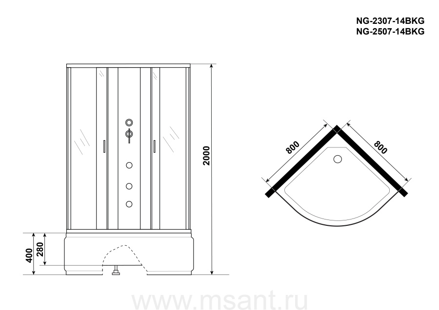 Душевая кабина Niagara Classic NG-2307-14BKG (80х80х200) высокий поддон(40см),стекло матовое