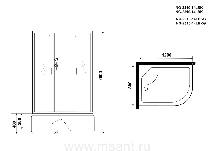 Душевая кабина Niagara Classic NG-2310-14LBKG (120х80х200) высокий поддон(40см),стекло матовое
