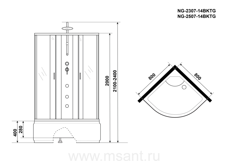 Душевая кабина Niagara Classic NG-2507-14BKTG (80х80х210) высокий поддон(40см),стекло тонированное