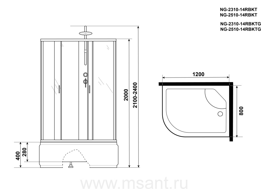 Душевая кабина Niagara Classic NG-2510-14RBKTG (120х80х210) высокий поддон(40см),стекло тонированное