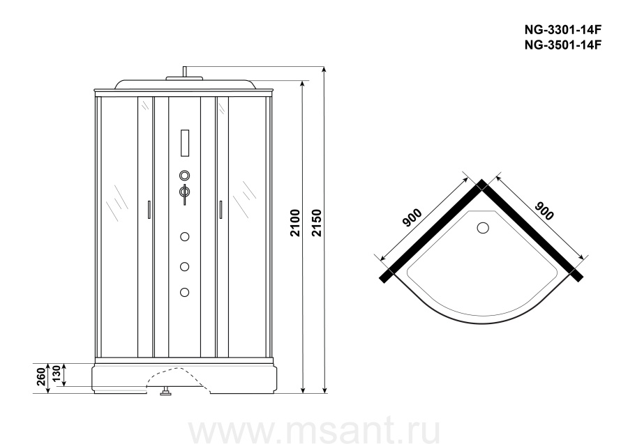 Душевая кабина Niagara Classic NG-3301-14F (90х90х215) средний поддон(26см),стекло матовое