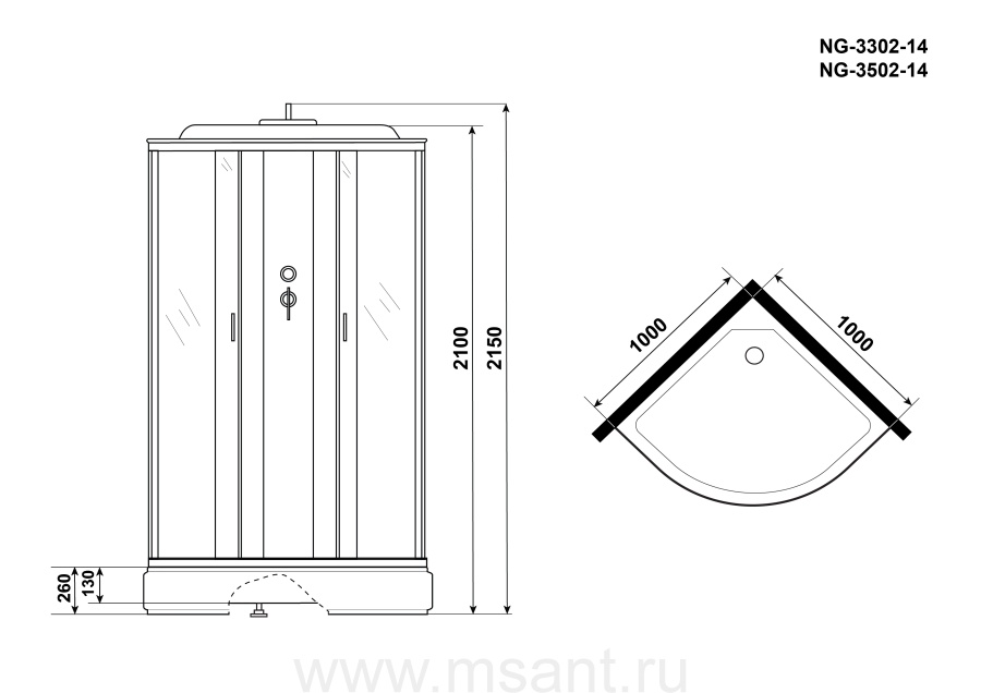 Душевая кабина Niagara Classic NG-3302-14 (100х100х215) средний поддон(26см),стекло матовое