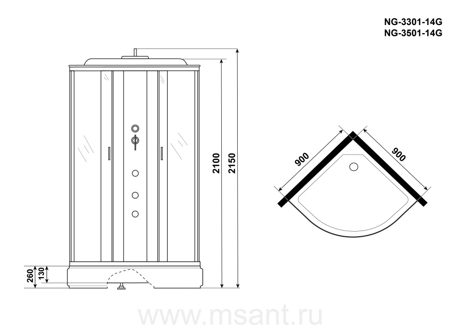 Душевая кабина Niagara Classic NG-3501-14G (90х90х215) средний поддон(26см),стекло тонированное