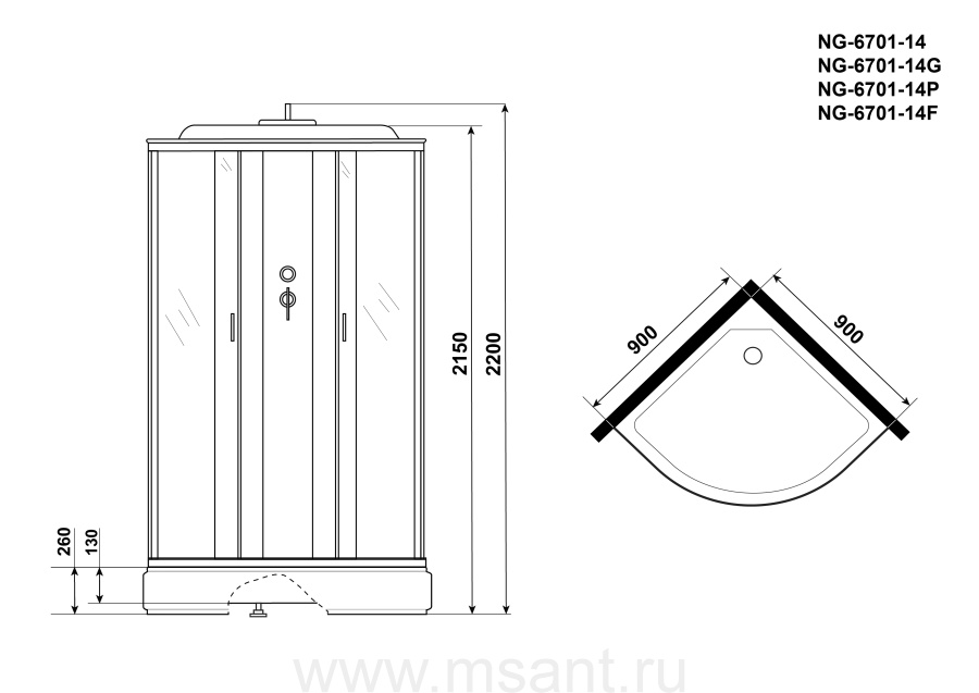 Душевая кабина Niagara Classic NG-6701-14 (90х90х215) средний поддон(26см),черный,стекло прозрачное