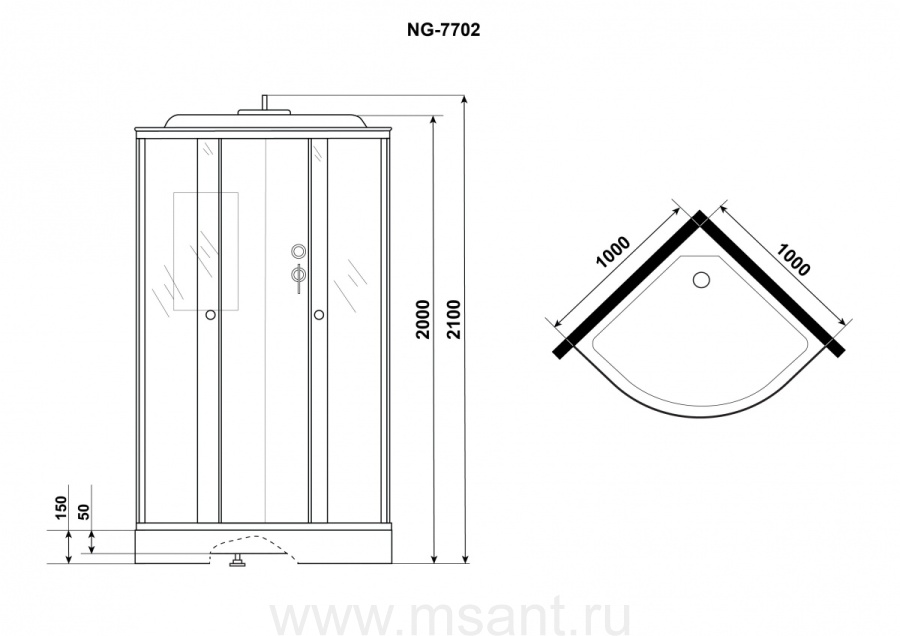 Душевая кабина Niagara Lux NG-7701G (90x90х210) низкий поддон(15см),дверь раздвижная,стенки золото,3 места