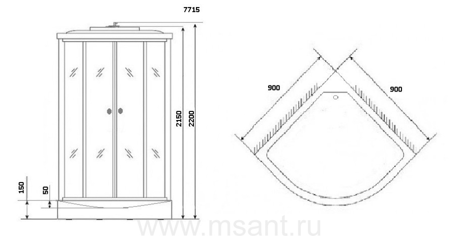 Душевая кабина Niagara Lux NG-7715W (90x90х215) низкий поддон(15см),дверь раздвижная,стенки серебро,4 места