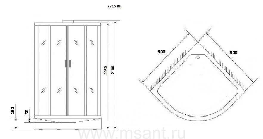 Душевая кабина Niagara Lux NG-7715WBK (90x90х210) низкий поддон(15см),дверь раздвижная,стенки серебро,без крыши,4 места