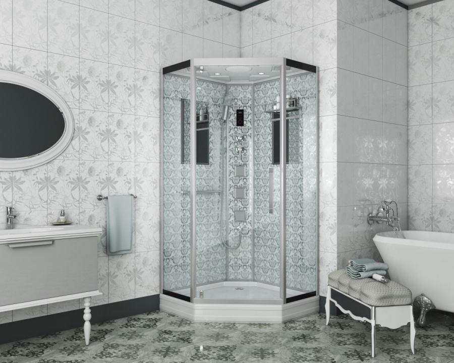 Душевая кабина Niagara Lux NG-7717W (100x100х215) низкий поддон(15см),дверь распашная,стенки серебро,4 места