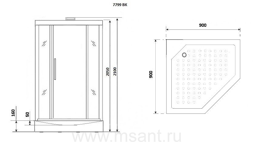 Душевая кабина Niagara Lux NG-7799WBK (90x90х210) низкий поддон(15см),дверь распашная,стенки серебро,без крыши,4 места