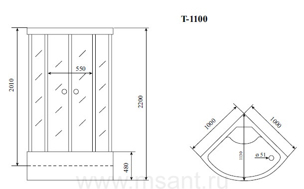 Timo Standart T-6601 Black Fabric душевая кабина (100*100*220), шт