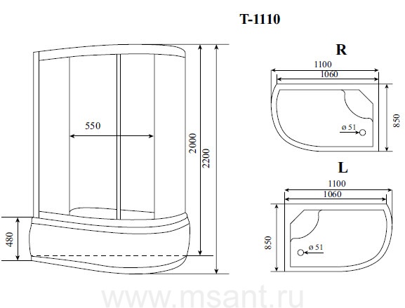 Timo Standart Т-6610 Silver R душевая кабина 110*85*220, турецкая баня хамам
