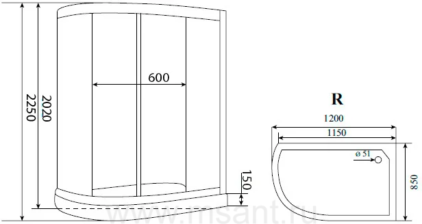 Душевая кабина Timo Standart T-1102 P R