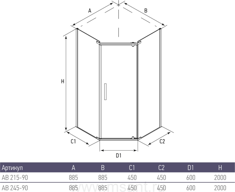 Поддон для душа Alex Baitler AB9017V-1 пятиугольный