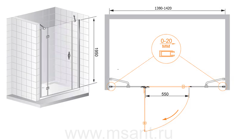 Душевая дверь в нишу Cezares Bergamo B13 40 60/40 C Cr L