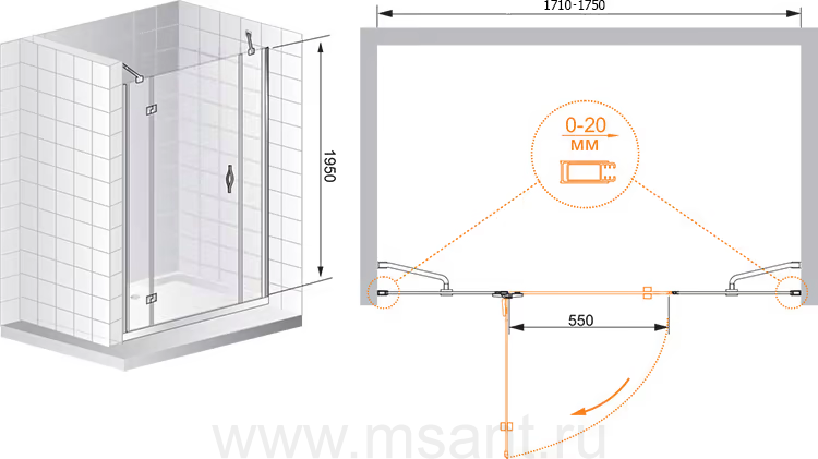 Душевая дверь в нишу Cezares Bergamo B13 90 60/30 C Cr L