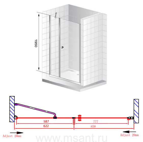 Душевая дверь в нишу Cezares Elena B11 60/90 P Cr R