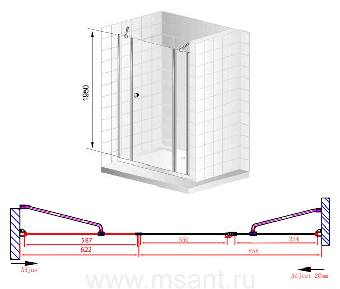 Душевая дверь в нишу Cezares Elena B13 60/60/30 P Cr R