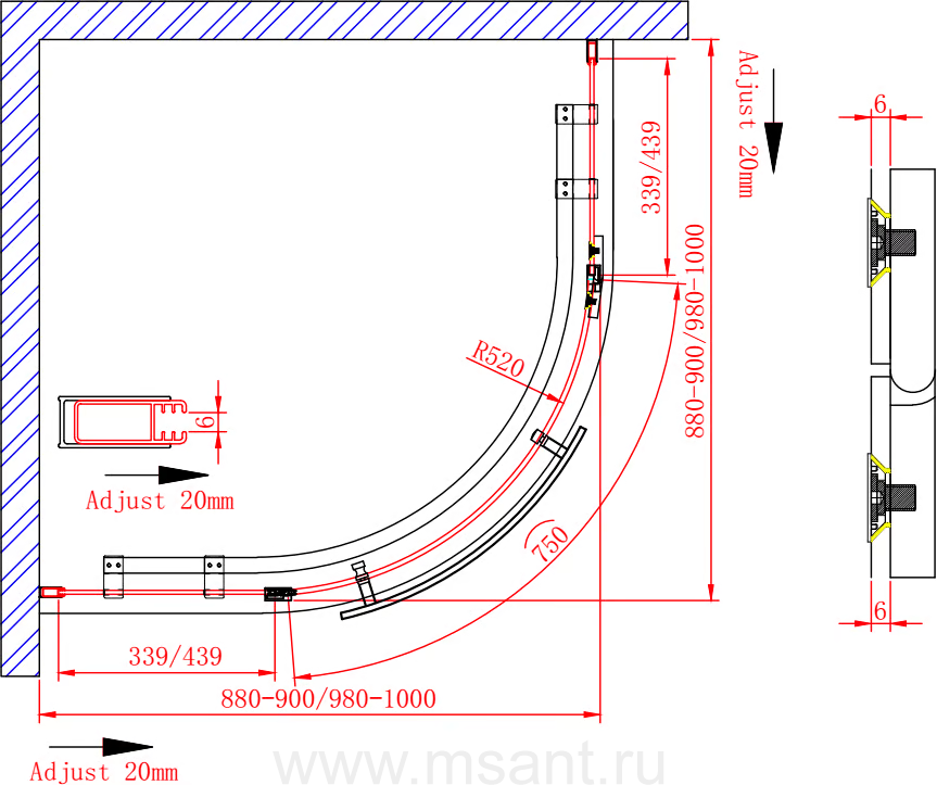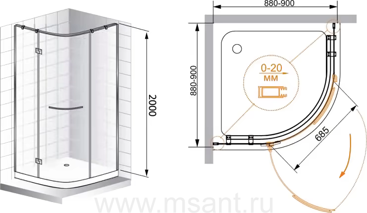 Душевой уголок Cezares Bergamo R1 90 Arco C Cr L IV
