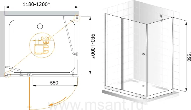 Душевой уголок Cezares Elena AH1 120/100 P Cr L