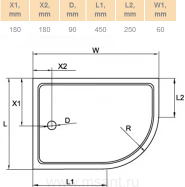 Поддон для душа Cezares Tray R550 100х80 см акриловый L