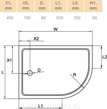 Поддон для душа Cezares Tray R550 120х90 см акриловый L