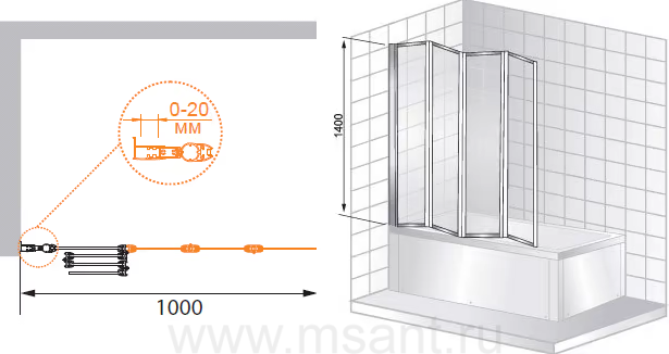 Шторка на ванну Cezares Pratico V4 100/140 P Cr L