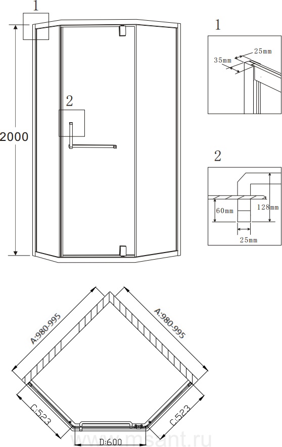 Душевые уголки, ограждения, поддоны