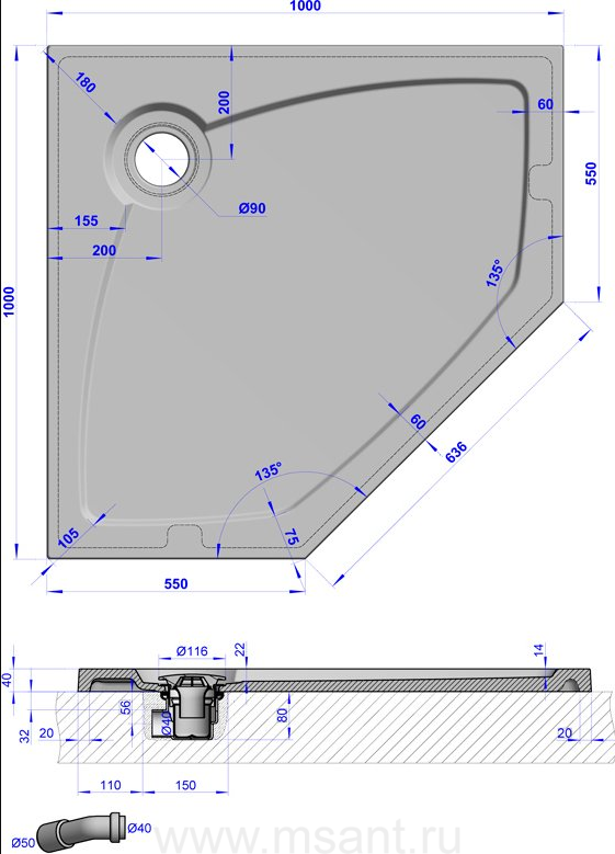 Поддон для душа GuteWetter Deluxe 100x100x4 P серый