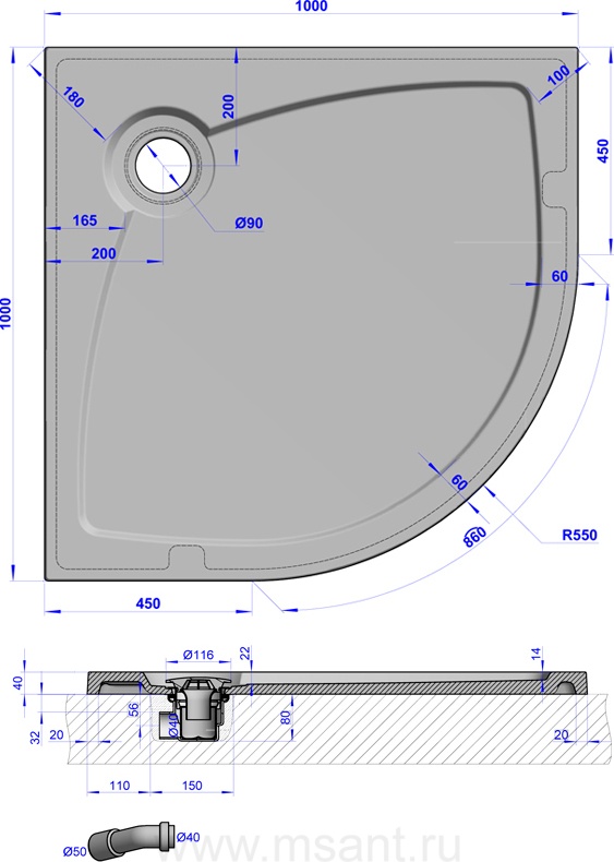 Поддон для душа GuteWetter Deluxe 100x100x4 R черный